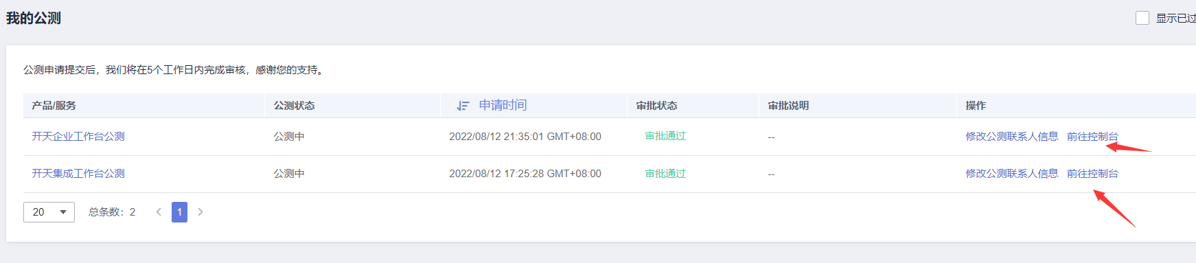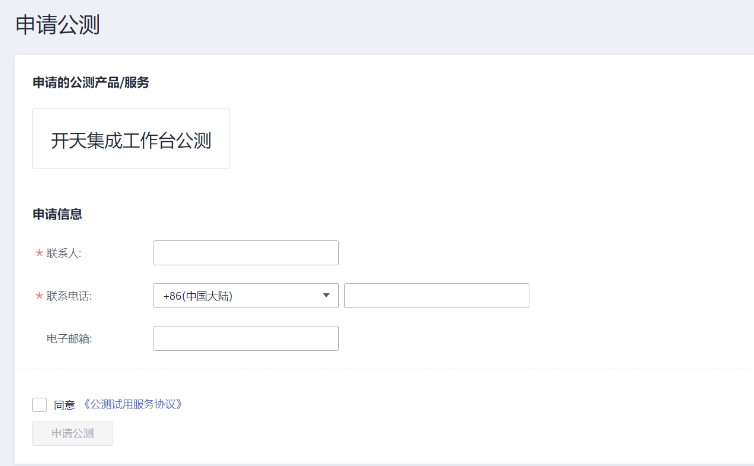 点击管理控制台按钮会自动跳转到公测申请页面。