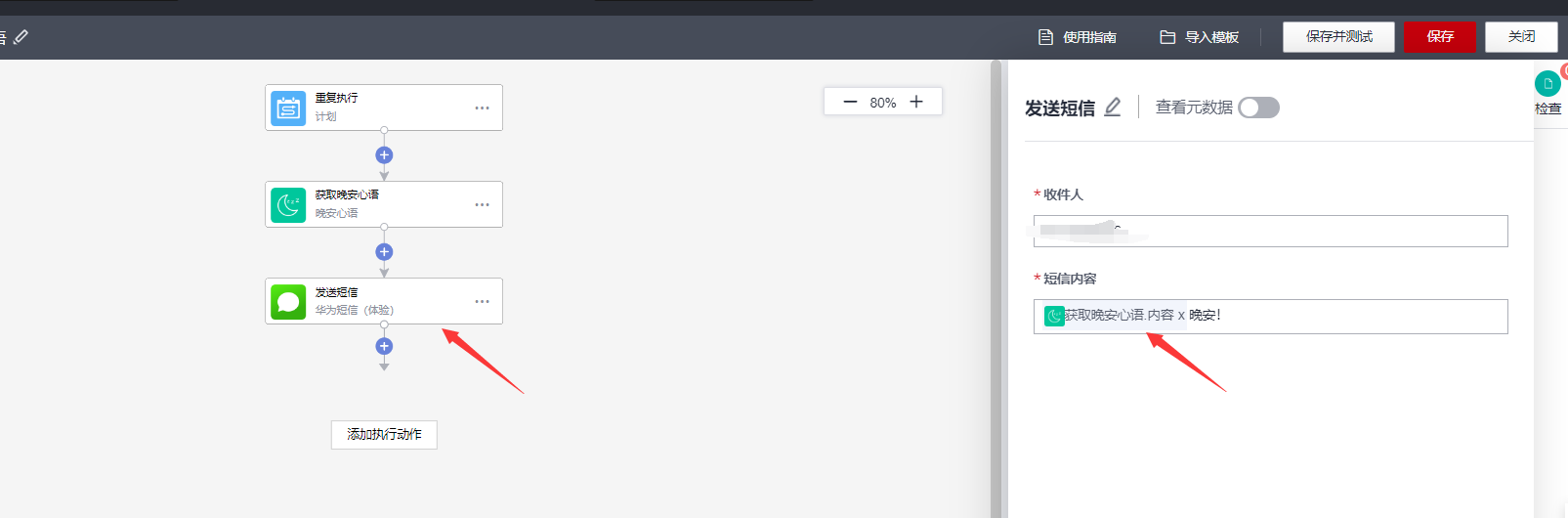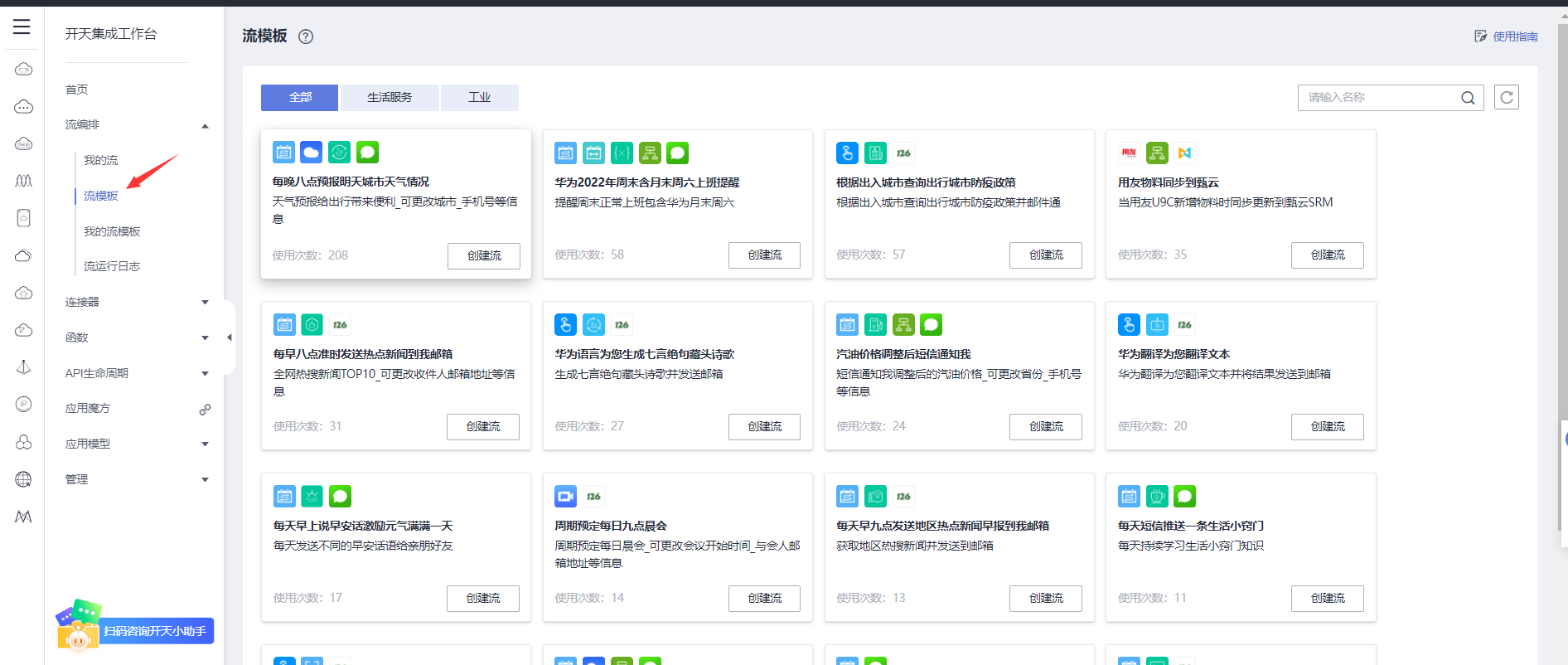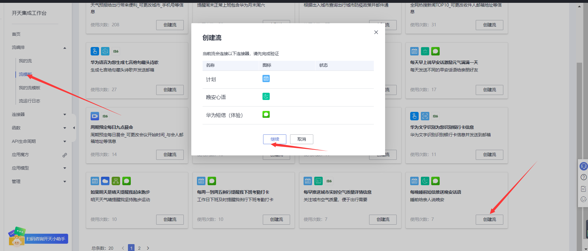 直接使用官方的流模板一键创建,然后输入手机号就可以直接使用了,直接运行