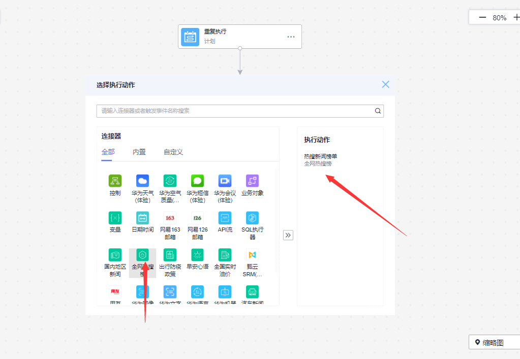 内置了很多API,可以直接使用,选中添加执行动作,接着找到这个热搜榜单,添加进我们的流里。