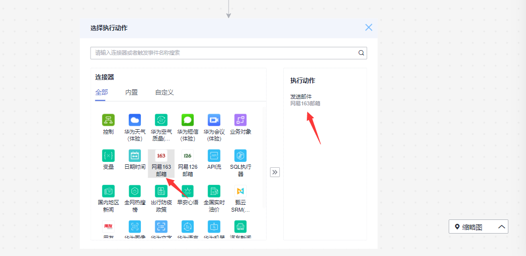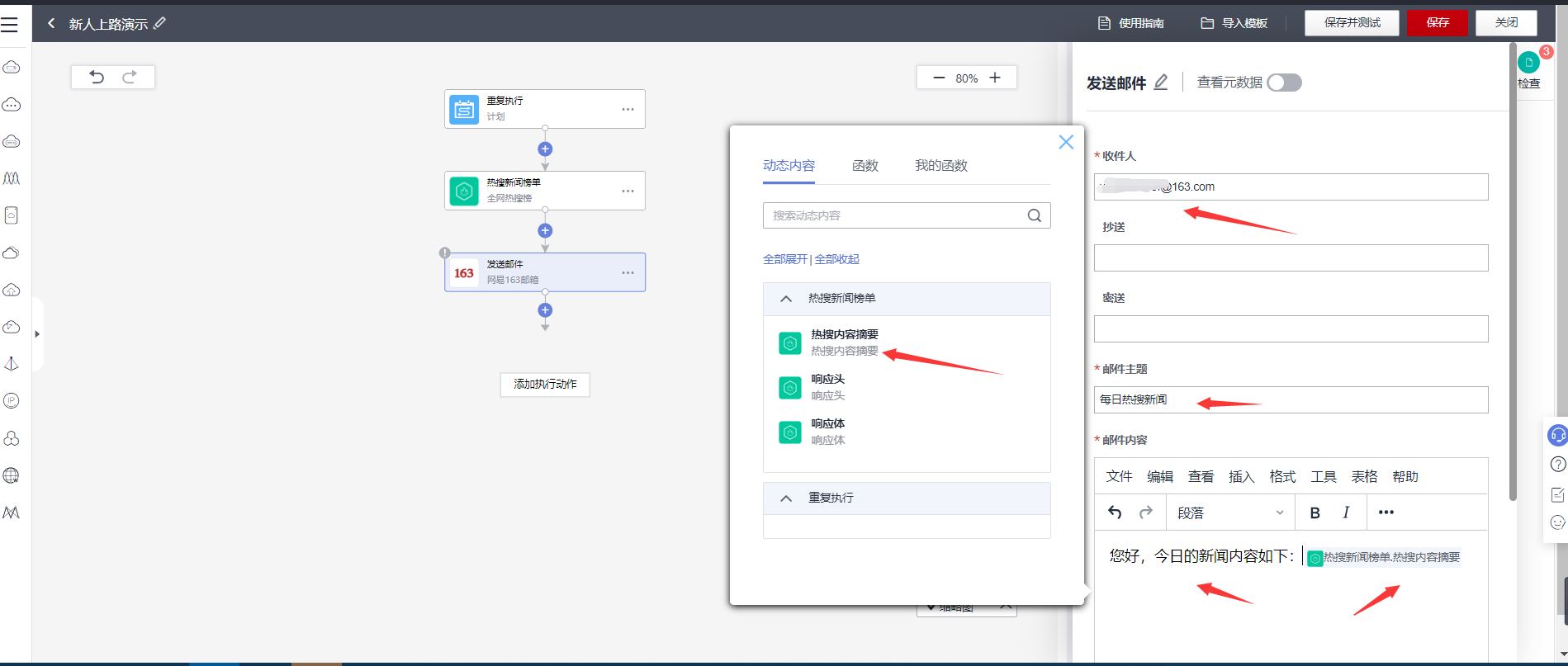 然后继续添加动作,发送到网易163邮箱,邮箱账户需要配置一下