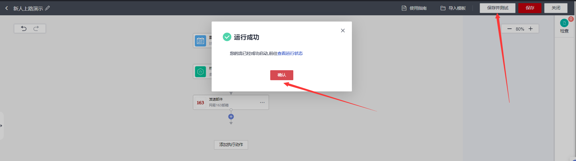 直接保存并测试,然后查看运行状态,显示都成功了,没有报错。