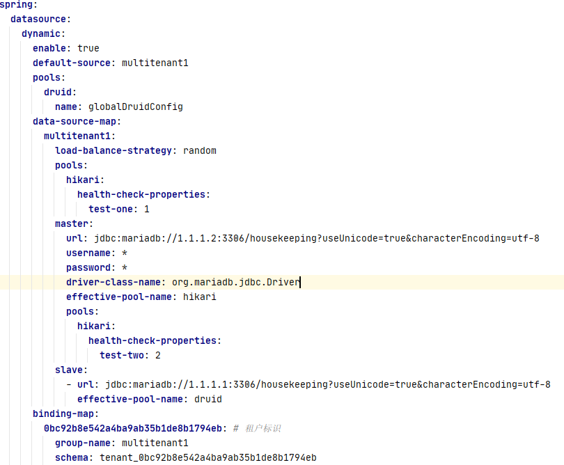 租户与数据源以及schema的绑定关系除了使用配置文件配置之外,还可以使用开放的扩展接口自行扩展绑定逻辑。
