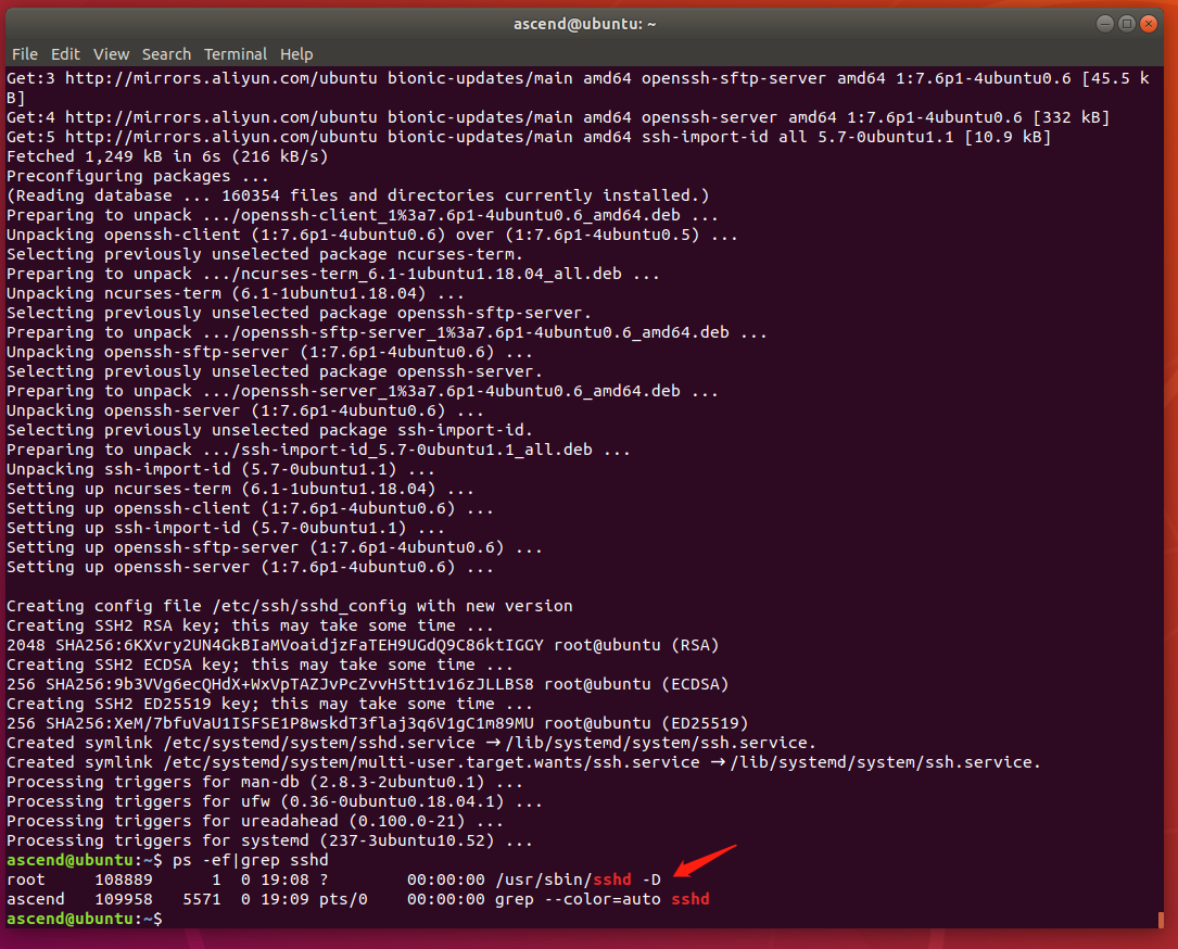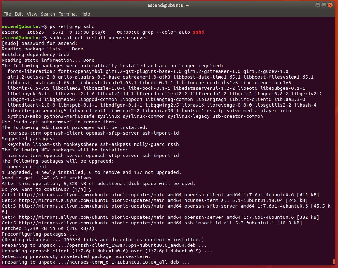 系统缺省没有安装sshd,安装openssh-server以便可以通过MobaXterm访问: