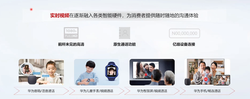 华为SparkRTC正逐步应用于华为各终端中,如华为音箱、儿童手表、华为智慧屏、华为手机,目前已支撑华为亿级终端中,使用效果畅连通话稳定,受到用户一致好评。