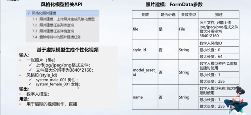 风格化模型服务,面向社交、会议等偏UGC场景,为客户提供快捷、高相似度的风格化照片建模能力,用户上传照片即可快速生成高相似度的3D风格化数字人。同时,用户可通过风格化捏脸工具可快速生成风格化3D数字人模型。