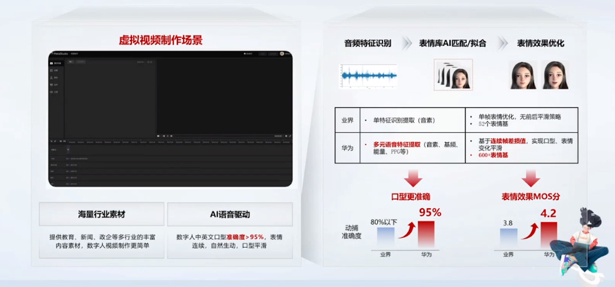 虚拟视频制作服务,面向政企产品宣讲、教育课件制作、新闻播报等场景,提供数字人视频制作服务。用户可通过剪辑式的配置界面,并结合华为云智能语音驱动的能力,可以制作各种数字人进行产品宣讲、课件宣讲、新闻播报的视频内容。