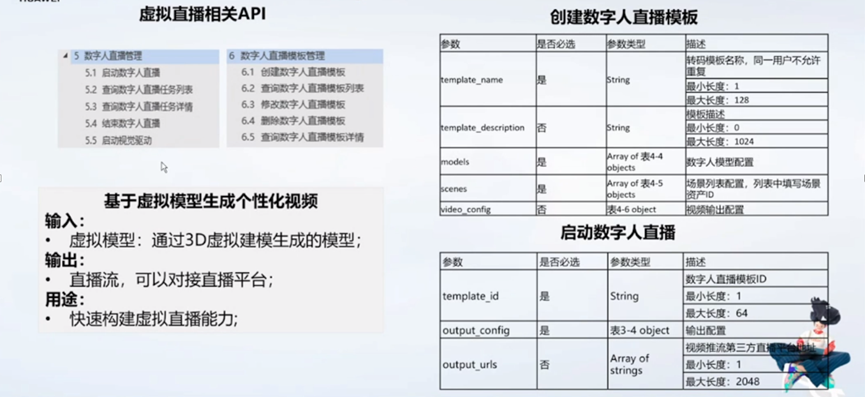 虚拟直播服务,面向互娱、教育、企业、电商等直播场景,提供数字人直播服务,用户可配置各种直播属性,即可生成主播视觉驱动的数字人直播流,并联接抖音、快手、保利威、目睹等直播平台。