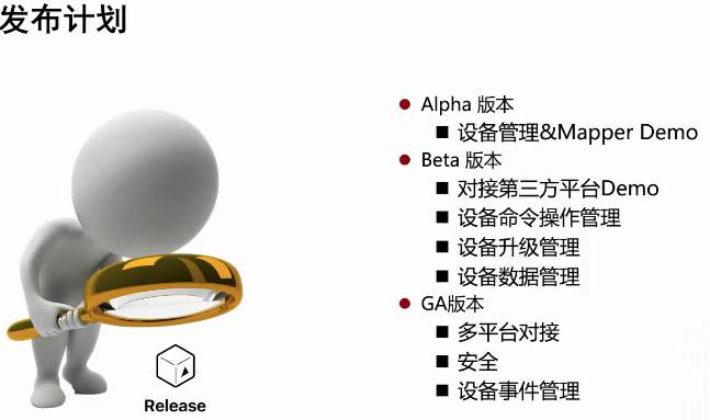上面是DMI的发布的三个版本,当前我们进度是在设备管理及mapper的demo开发,如果感兴趣可以在社区联系我们;