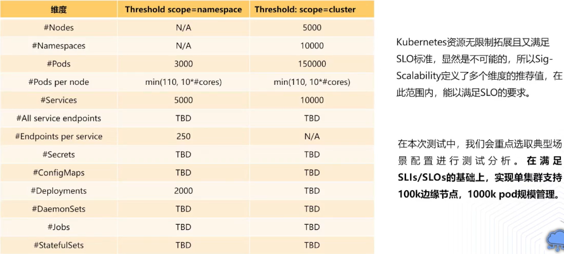 开展大规模测试需要定质量指标,这里复用kubedges指标,如下图;第二部分定义pod端到端启动时延,规定pod端到端除去拉取时间要小于等于5s,只有满足这些指标,才能支持多大规模;