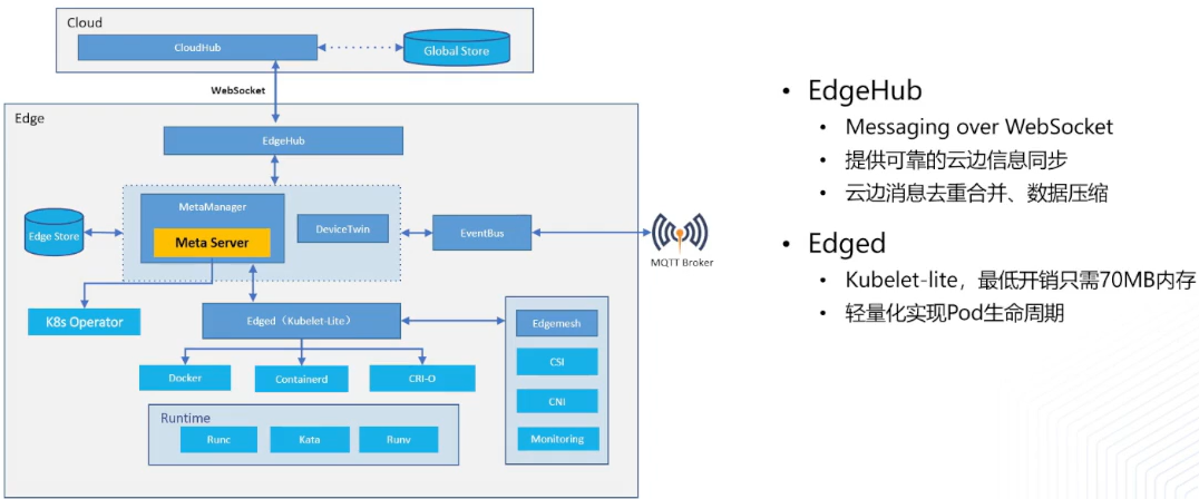 所以针对频繁网络断连场景,EdgeHub会重新发起WebService请求,元数据也会经过新的Controller做比较,减少传输带宽,用CRD记录版本号达到可靠数据传输
