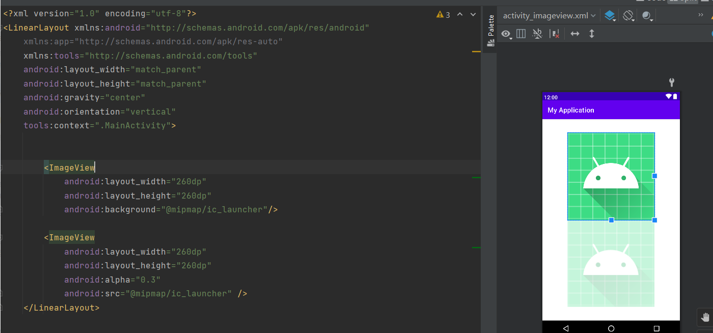 | android:alpha | 设置图片透明度 |