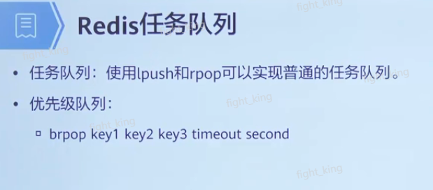 Redis任务队列。任务队列:使用lpush和rpop可以实现普通的任务队列。优先级队列:brpop key1 key2 key3 timeout second。