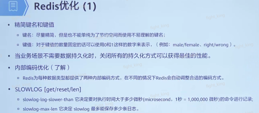 精简键名和键值。键名:尽量精简,但是也不能单纯为了节约空间而使用不易理解的键名;键值:对于键值的数量固定的话可以使用0和1这样的数字来表示,(例如:male/female、right/wrong)。当业务场景不需要数据持久化时,关闭所有的持久化方式可以获得最佳的性能。
