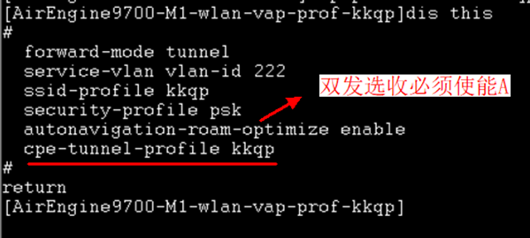 - 目前配置双发选收,必须在VAP下使能AGV漫游,否则可能出现CPE无法关联问题