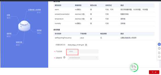 4、点击下一步,选择设备平台、设备连接协议、开发语言;