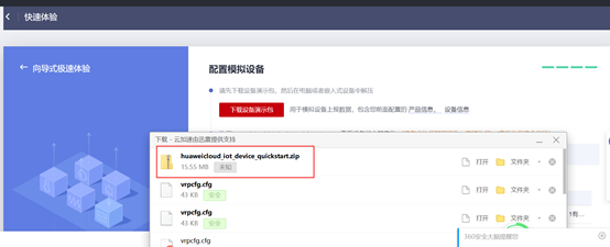 5、出现如下提示后,点击“下载设备演示包”,下载后解压文件;