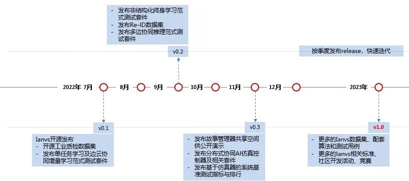 Ianvs项目规划路标如下图。欢迎关注Ianvs项目,持续获得第一手独家公开数据集与完善基准测试配套。社区也持续募集在Ianvs项目上的合作伙伴,共同孵化开源项目、研究报告及行业标准等。开源项目GitHub地址:https://github.com/kubeedge/ianvs