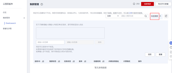 - 登录云搜索服务管理控制台。在左侧菜单栏选择“集群管理”。