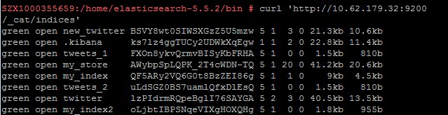 curl 'http://X.X.X.X:9200/_cat/indices'
