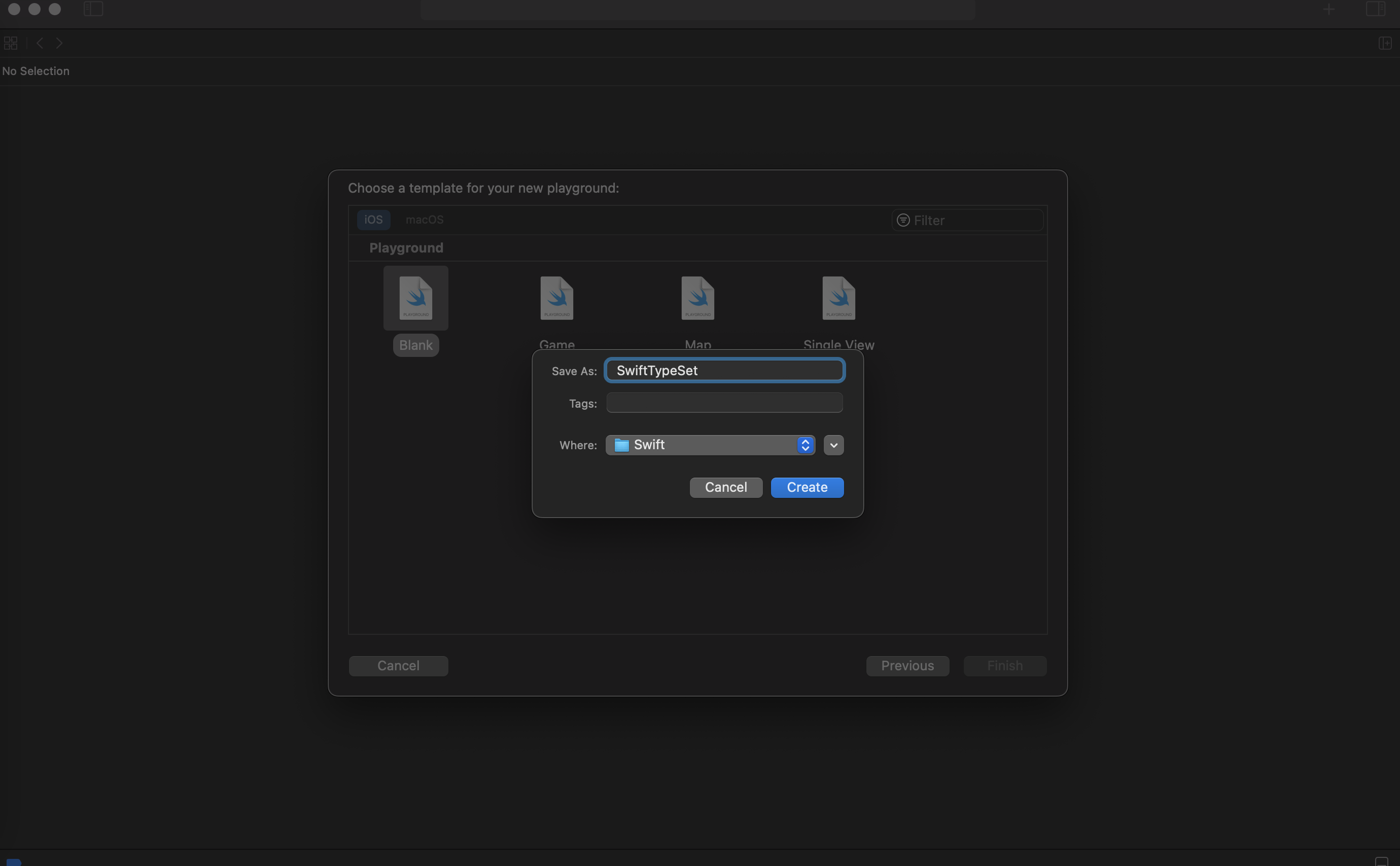 我们新建一个PlayGround文件,命名为SwiftTypeSet。
