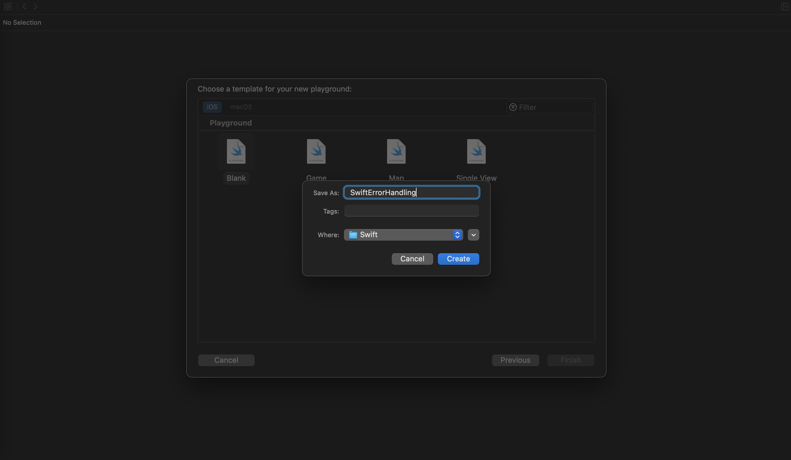 我们新建一个PlayGround项目,命名为SwiftErrorHandling。