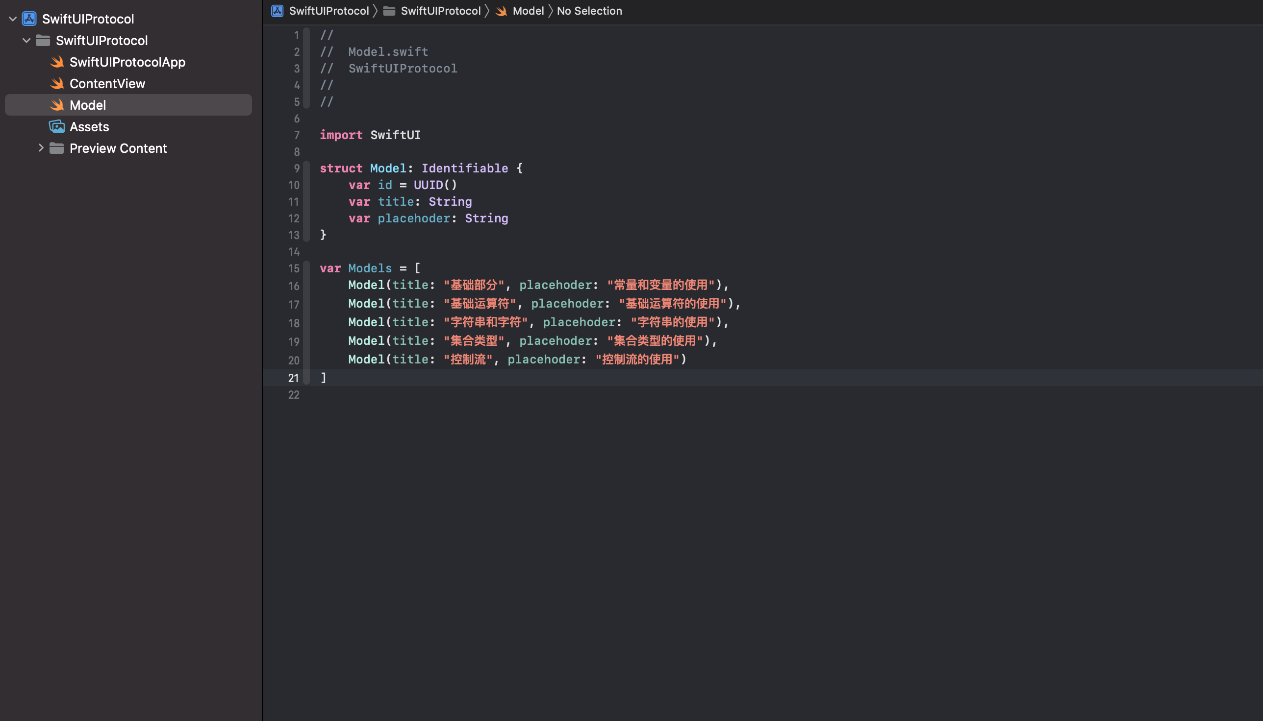 上述代码中,我们创建了一个Model结构体,它遵循Identifiable协议。