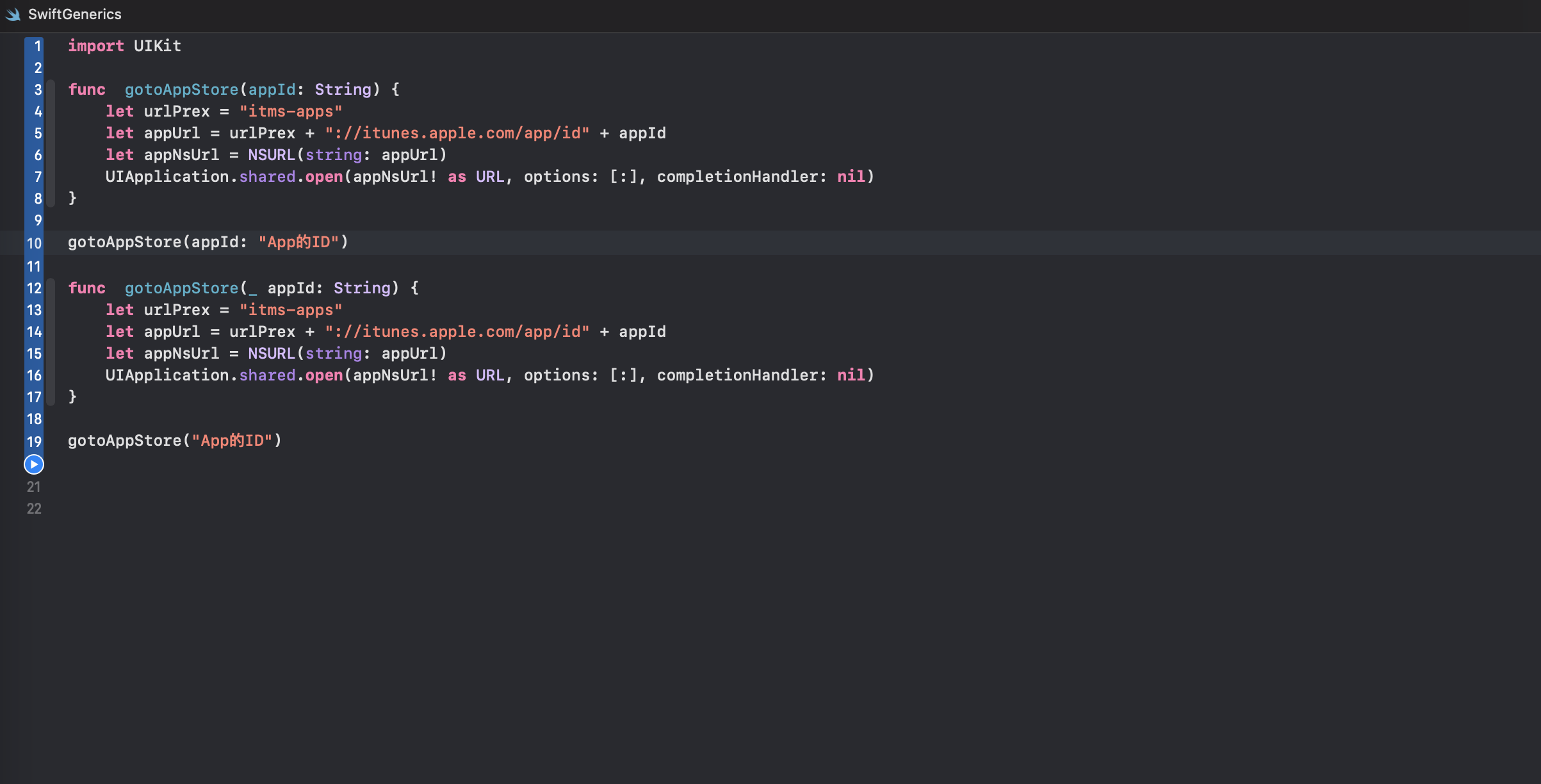 let appUrl = urlPrex + "://itunes.apple.com/app/id" + appId