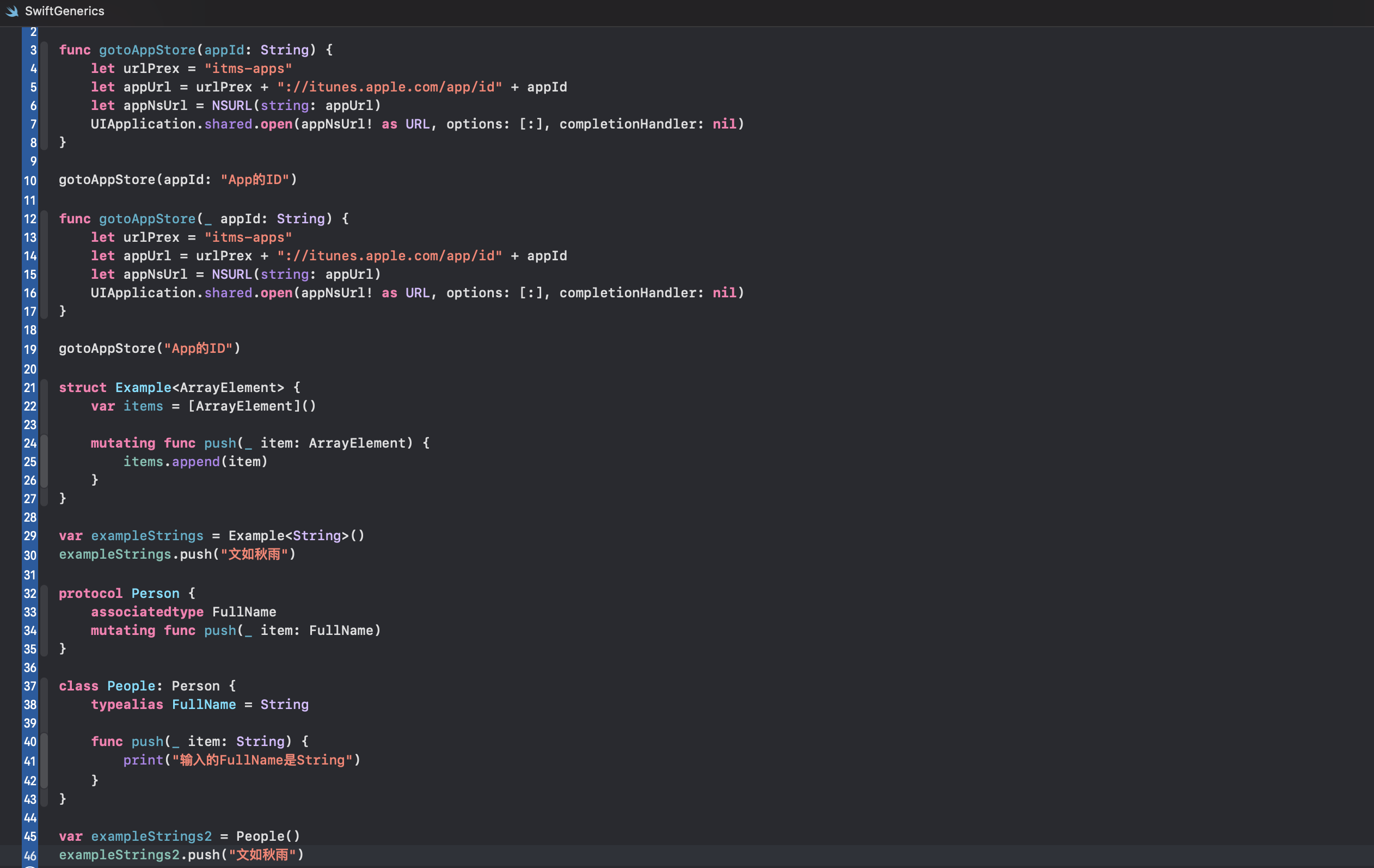 然后依旧写了一个接收泛型函数的方法push,我们再定义一个class来遵循这个协议。示例: