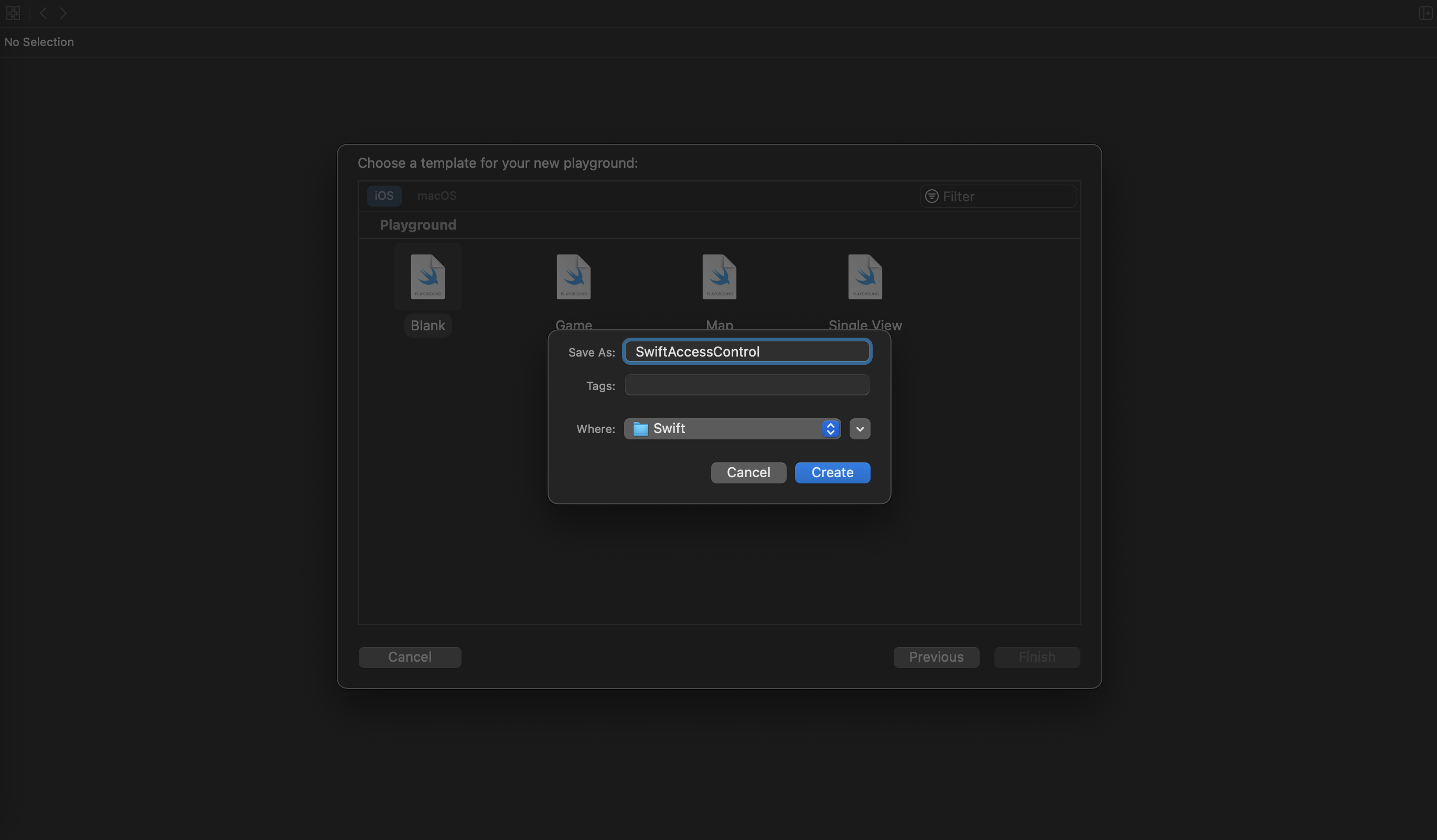 我们新建一个PlayGround项目,命名为SwiftAccessControl。
