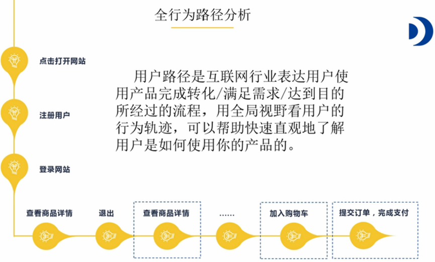 全行为路径分析的主要应用场景有:用户典型、频繁的路径模式识别;用户行为特征的识别;网站产品设计和优化的依据和参考;网站运营和产品运营的过程监控。