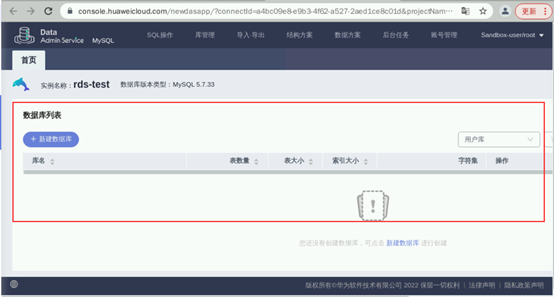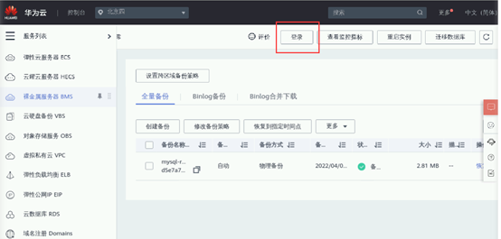 返回云数据库列表,点击右侧“登录”按钮,使用DAS连接实例。