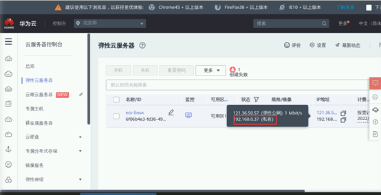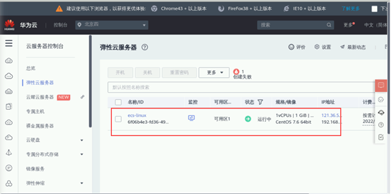 返回控制台,在服务列表中找到弹性云服务器ECS(实验环境中已经预置了一台Linux云主机)。