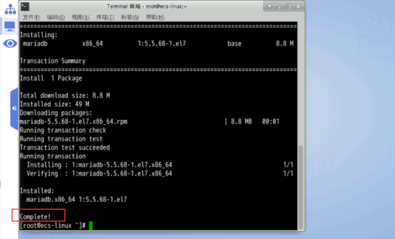 输入以下指令,安装mysql客户端,出现下图说明安装已完成。