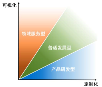 低代码产品能力定位图将低代码产品分为:普适发展型、领域服务型、产品研发型。能力定位图进一步提出创新先驱型概念。