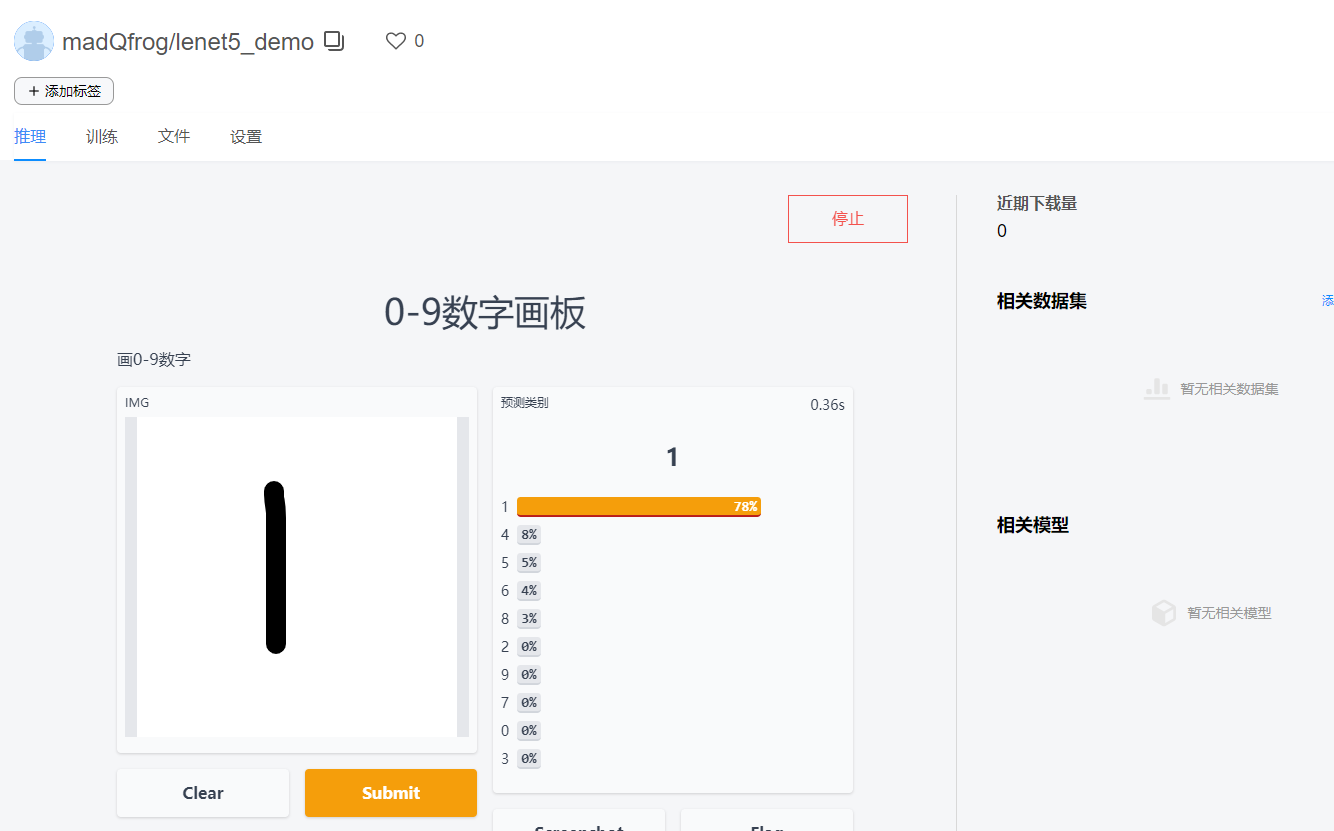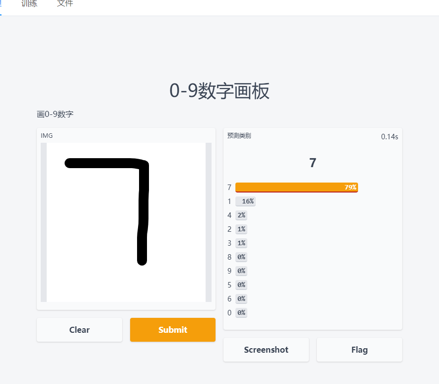 在左边手写数字,点击Submit ,就可以直接通过lenet进行识别。