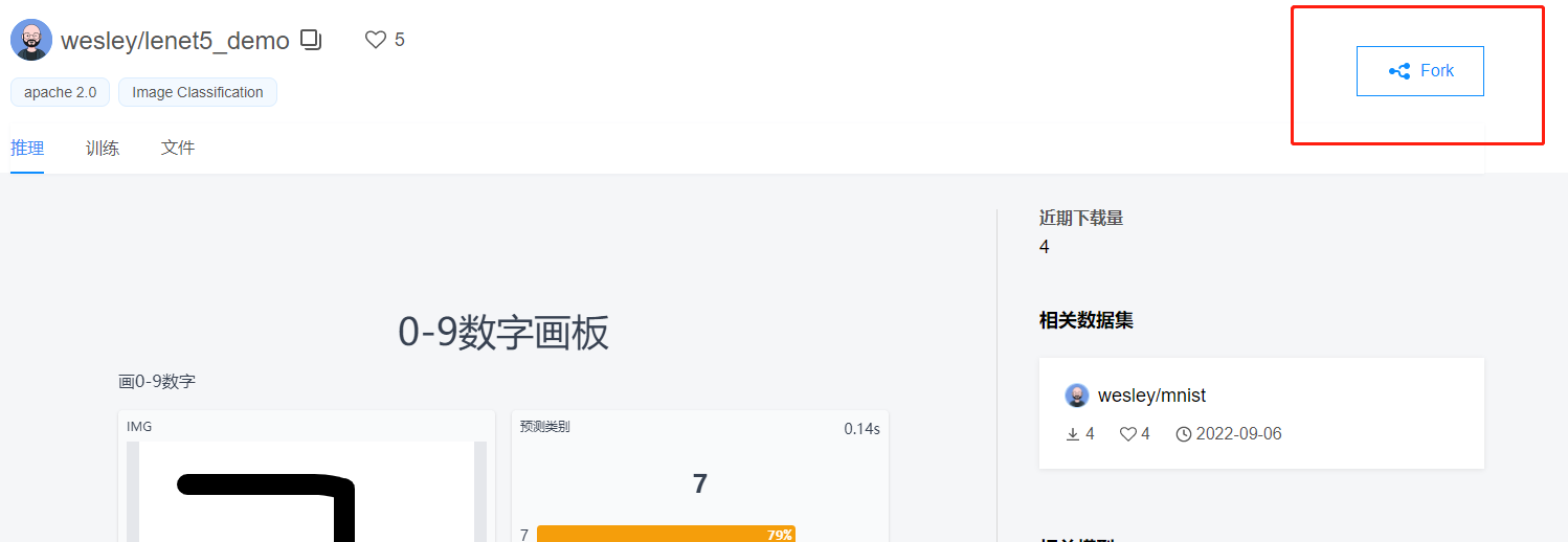 这个也是保姆级,不单有算法的描述,还有论文的连接,样例仓的demo,点击wesley/lenet5_demo蓝色的链接可以直接体验。