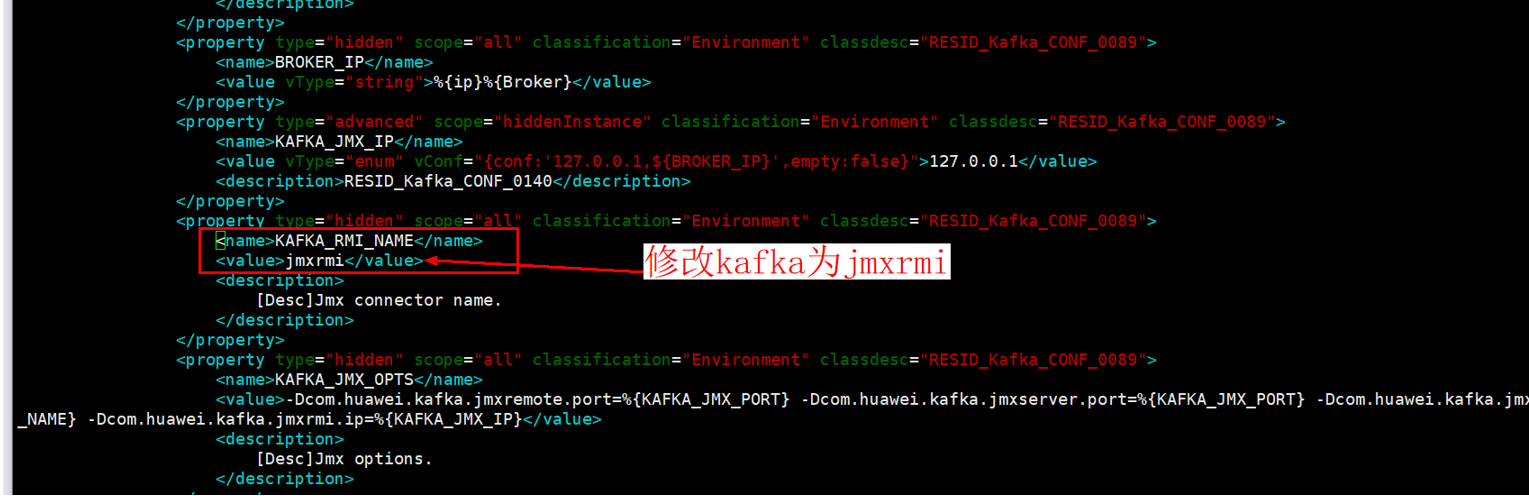 搜索关键词:<name>KAFKA_RMI_NAME</name>,并按照下图进行修改。