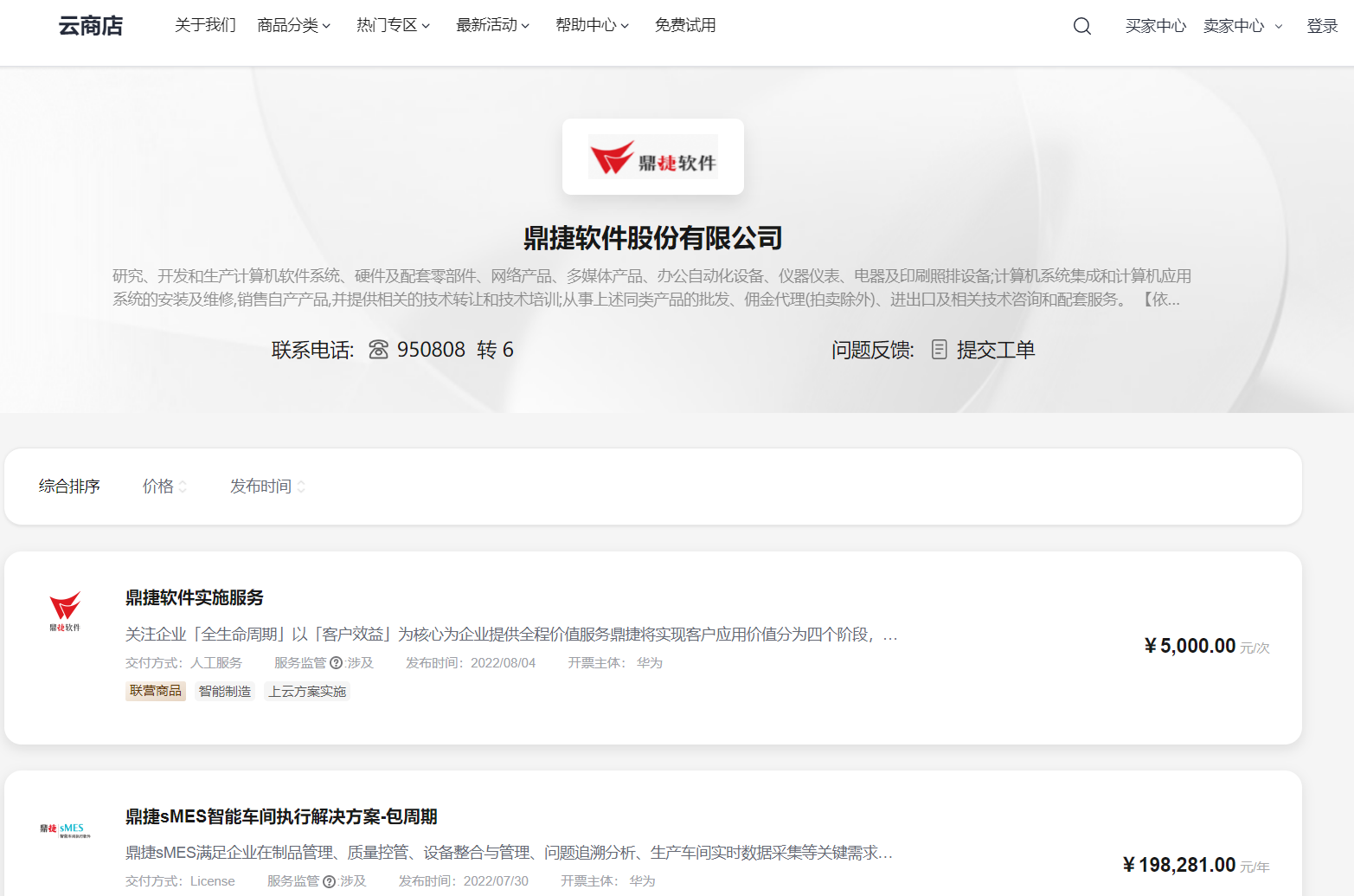 华为云云商店店铺详情:鼎捷软件