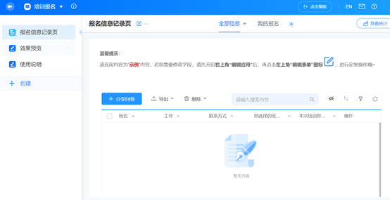 进入零代码:在完成任务一的基础上,回到AppCube开发界面,点击“零代码”——>“使用模板新建”