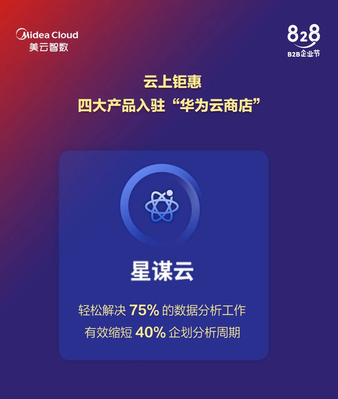 8月28日,华为联合3万家生态伙伴,共同发起全国首个基于数字赋能的“828 B2B企业节”,为中小企业搭建一个创新发展平台帮助他们“成就好生意,成为好企业”。美云智数作为“828 B2B企业节”协办单位,基于美的数字化创新业务以及落地实践,共同助力企业数字化转型。