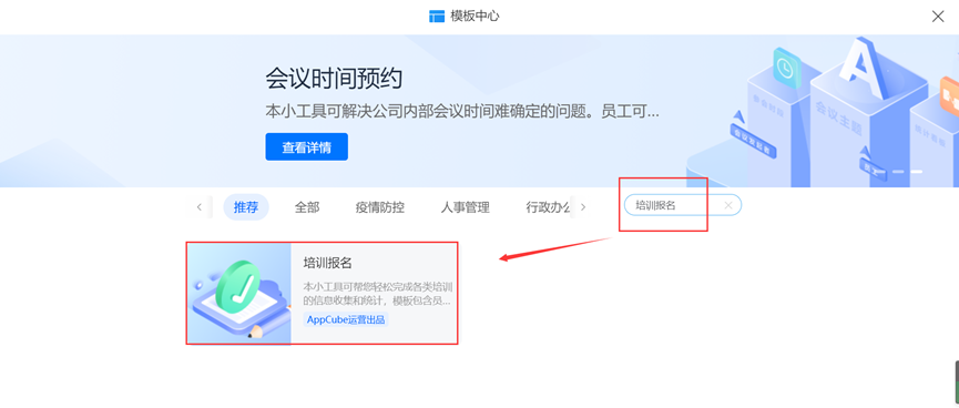 在模板中搜索“培训报名”模块;