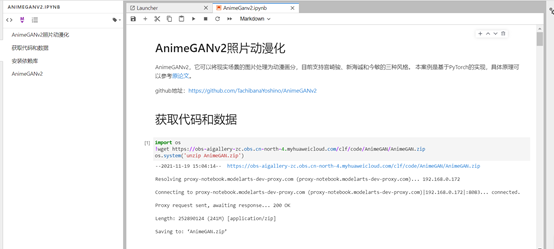 点击红色按钮【Run in ModelArts】进入到ModelArts界面: