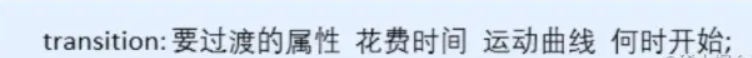 - 属性︰想要变化的css属性,宽度高度背景颜色内外边距都可以。如果想要所有的属性都变化过渡,写一个all就可以。