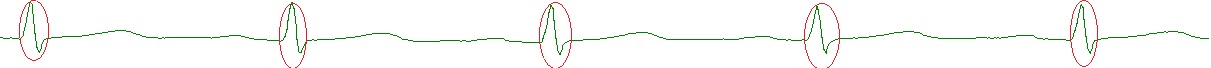 (3.1)对于心电信号可选择如下参数:滑动窗长度0.06s,最短事件长度0.05s,最长事件长度为0.3s,能量包的峰值间距为0.24s,幅度门限为20,进行局部积分预处理,呈现形式为波峰标记,如下图所示。