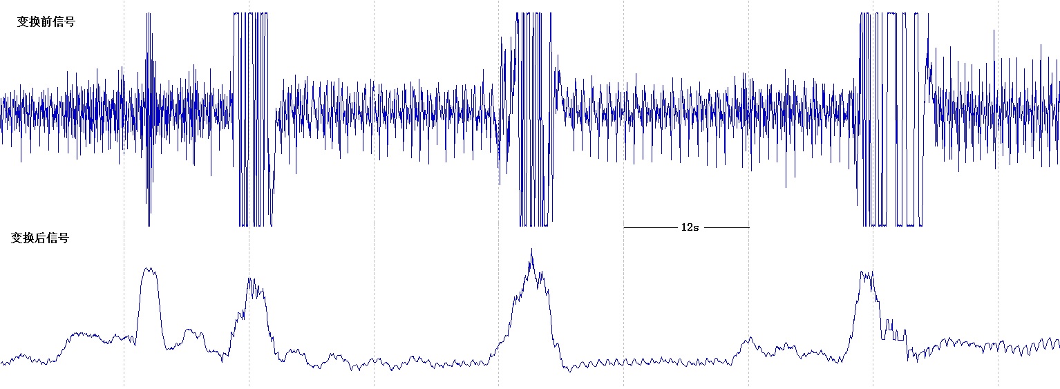 在信号时间序列中,经常遇到的情况是,幅度变化较大的和幅度变化较小的信号段交替出现,有时呈现准周期性,信号幅度变化较大的时段经过绝对积分后就是一个向上凸起的鼓包,幅度变化较小的就变得相对平坦,我们把这种鼓包叫做能量包。心电QRS波,脉搏波、呼吸波、语音、鼾声、体动、加速度等信号经过适当的积分变换都可以产生能量包。