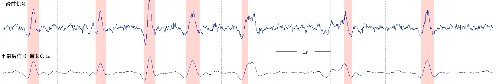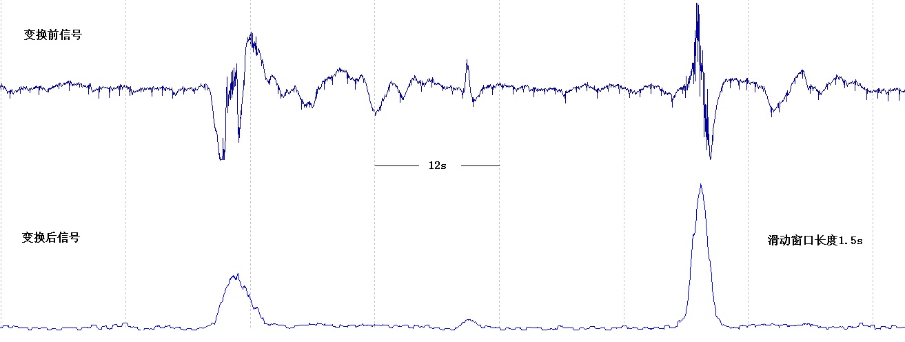 (2.4)以下是一段体动信号的局部积分变换前后波形,滑动窗口长度为2s,采样率为100Hz。
