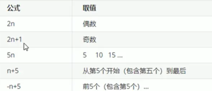 n如果是数字,就是选择第n个子元素,里面数字从1开始...