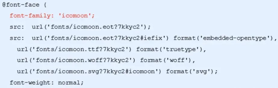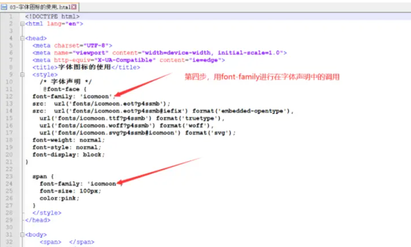 2.在CSS样式中全局声明字体︰简单理解把这些字体文件通过css引入到我们页面中。
