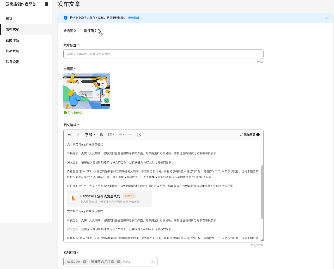 封面图:支持png,jpg格式,大小不超过5M,尺寸960*720。要求图片清晰美观,与内容相关,无版权问题