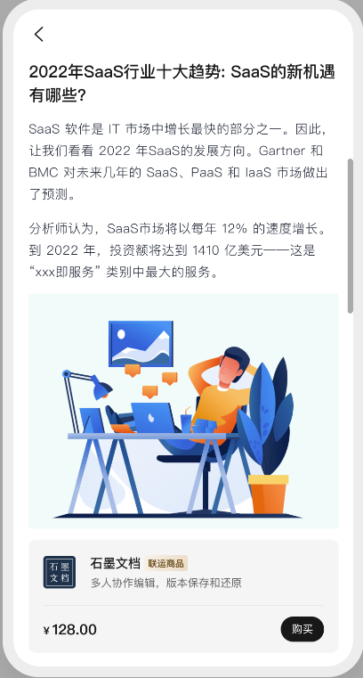 添加商品:个人账号可插入添加云商店中任意商品(需与内容相关),服务商账号只可添加本企业在云商店中上架的商品